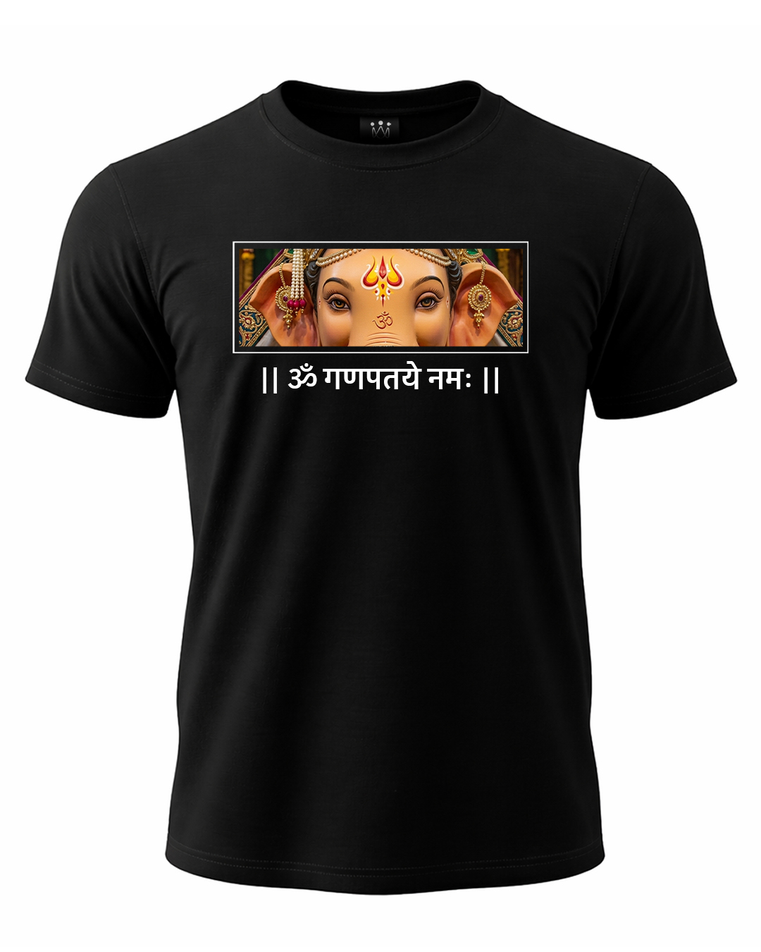 Express your devotion and style with this premium 100% Cotton T-Shirt featuring a beautiful “ॐ गणपतये नमः” design with artistic elements. This design represents positivity, strength, and blessings of Lord Ganesha, making it perfect for everyday wear or festive occasions.
