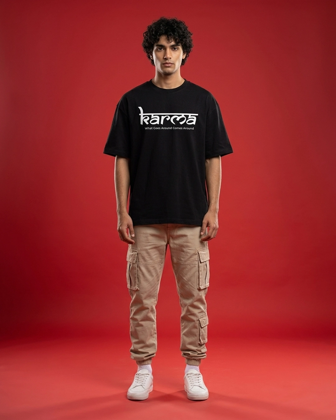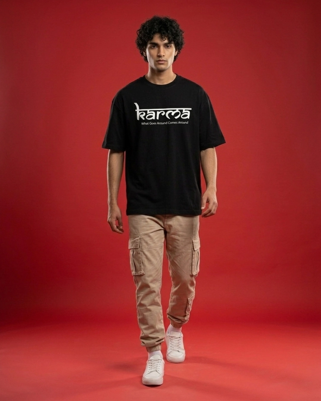 Karma Oversized Black T-Shirt – Premium Cotton Streetwear for Men